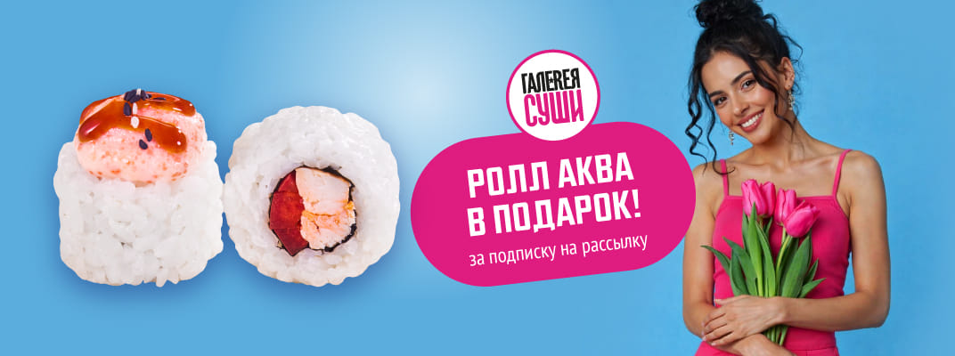 Оставайся в нашей тусовке: подписчики рассылки первыми узнают о самых мощных скидках и секретных акциях Галереи Суши.
